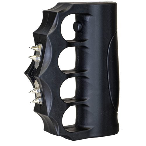 ZAP Blast Knuckles Extreme 950,000 Volt is a shocking high voltage stun gun that provides you with an easy way to protect yourself while on the go. The rubberized contour grip ensures you’ll have a firm grip while the 950,000 volts of stun protection await their call to action. Set in an intimidated spiked design, the four sharp electrodes add a layer of protection that on their own allow a serious blow to your attacker should you choose not to use the stun feature or the batteries need replacing. The spikes also offer you, during a self-defense situation, a way to collect DNA evidence that may prove useful to later present to the authorities. Use while jogging, walking alone at night, or exploring unfamiliar places for a convenient and instantly accessible way to keep yourself safe from the unknown.